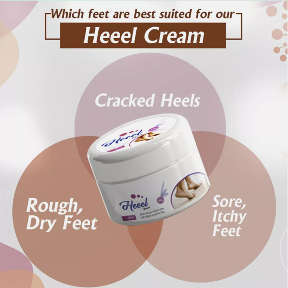 Apply the Cream Generously : Squeeze an appropriate amount of Heeel Cream onto your fingertips and gently apply it to your feet, focusing on areas with dry or cracked skin, particularly the heels.
